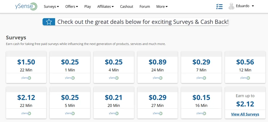La cantidad de dinero que puedas llegar a ganar con ySense puede llegar a variar, pero dependerá mucho del tiempo que le inviertas. Aunque tienes que recordar que al ser página de encuestas, es muy probable que te rechacen de algunas encuestas y tengas que pasarte a la siguiente.
